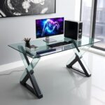 Elevate your gaming experience with this stylish modern glass gaming PC table. Designed with a durable glass top and a sturdy frame, it adds a premium touch to your setup. The spacious design accommodates multiple monitors, gaming peripherals, and accessories. Equipped with built-in RGB lighting, this table creates an immersive gaming ambiance. Ideal for gamers seeking both aesthetics and functionality, it’s the perfect centerpiece for any gaming room.